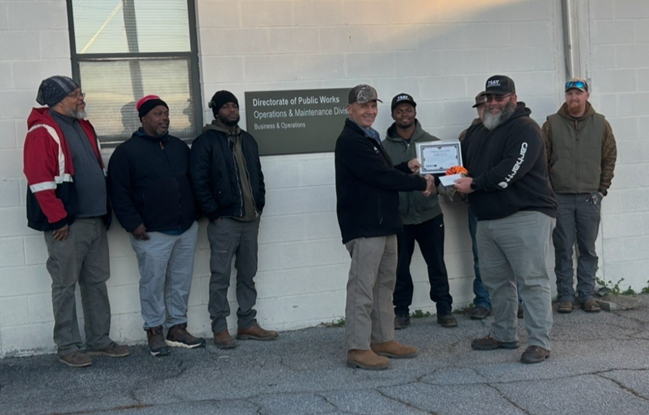 On March 14th, 2024, Timmy Blount (our Tsay Project Manager at Ft Stewart), along with Gary Douglas, Ethan Suding, Kerry Downing, Mark Easton, Jim Maddox, and Sammy Muse took the time to let Daryl Moultrie know they were appreciative for his stepping up as Water plant operator during the months of January & February. Daryl worked extra shifts so that Hunter Army Airfield (HAAF) stayed compliant with all aspects of water treatment. Timmy Blount recognized Daryl and told him a job well done! Daryl received a $75.00 gift card and a certificate of appreciation for his recognition.