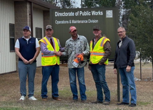 Attendees from left: Jonnie Graebener (Pegasus Program Manager – Fort Stewart/HAAF); Timmy Blount (TFW Project Manager Fort Stewart/HAAF); Brandon Gordon (Heavy Equipment Operator–Fort Stewart); Doyce Hendrix III (Lead Heavy Equipment Operator–Fort Stewart); Paul Guzman (DPW COR Branch DIV).